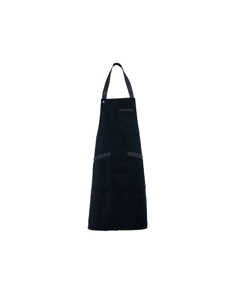 Ποδιά λαιμού ΑΧΟΝ μαύρη με ριγέ λουρί στο λαιμό και δύο μεταλλικά τρουκς για ευκολη ρύθμιση