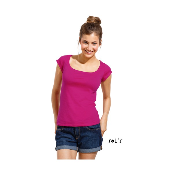 Sol's γυναικείο t-shirt με πολύ κοντό μανίκι, βαθιά λαιμόκοψη, εφαρμοστή γραμμή και πλαϊνές ραφές.