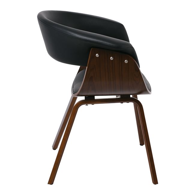 Η καρέκλα είναι κατασκευασμένη από ξύλο & επενδυμένα με τεχνόδερμα υψηλής ποιότητας σε μαύρο χρώμα στο πίσω μέρος της πλάτης και του καθίσματος. Πρόκειται για καρέκλες με ιδιαίτερη αντοχή και σχεδιασμό