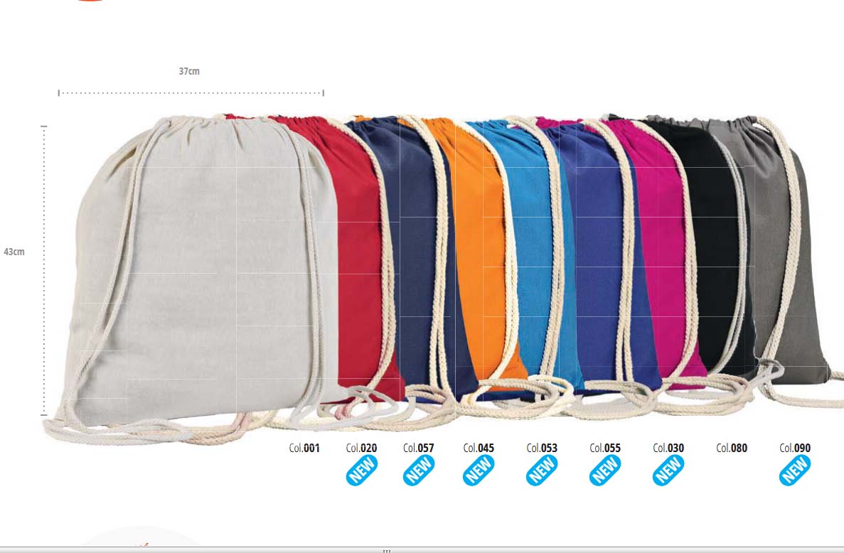 Τσάντα ώμου με κορδόνια βαμβακερή, 110grs. 37 x 41εκ. Χωρητικότητα 10L.