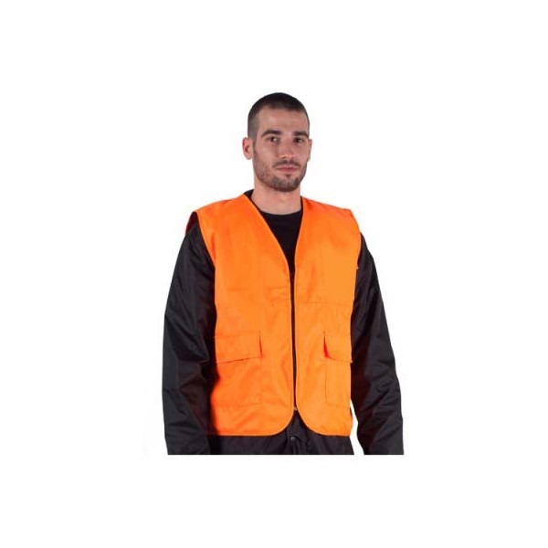 Λεπτομέρειες: Γιλέκο κυνηγών με εσωτερικό δίχτυ.Έντονη ''ανακλαστική'' απόχρωση.Τσέπη για το θήραμα στην πλάτη.Δύο τσέπες με καπάκι μπροστά.Κλείσιμο με φερμουάρ.