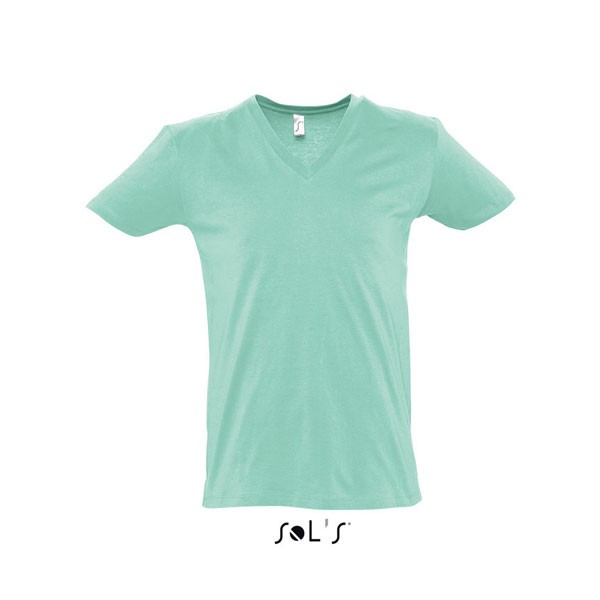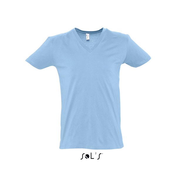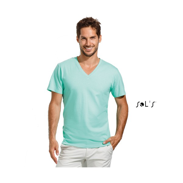 Sol's ανδρικό t-shirt με κοντά μανίκια, βαθιά λαιμόκοψη “V” με ριπ φάσα, φακαρόλα στο λαιμό και πλαϊνές ραφές. Δείτε την γυναικεία έκδοση : Moon - 11388