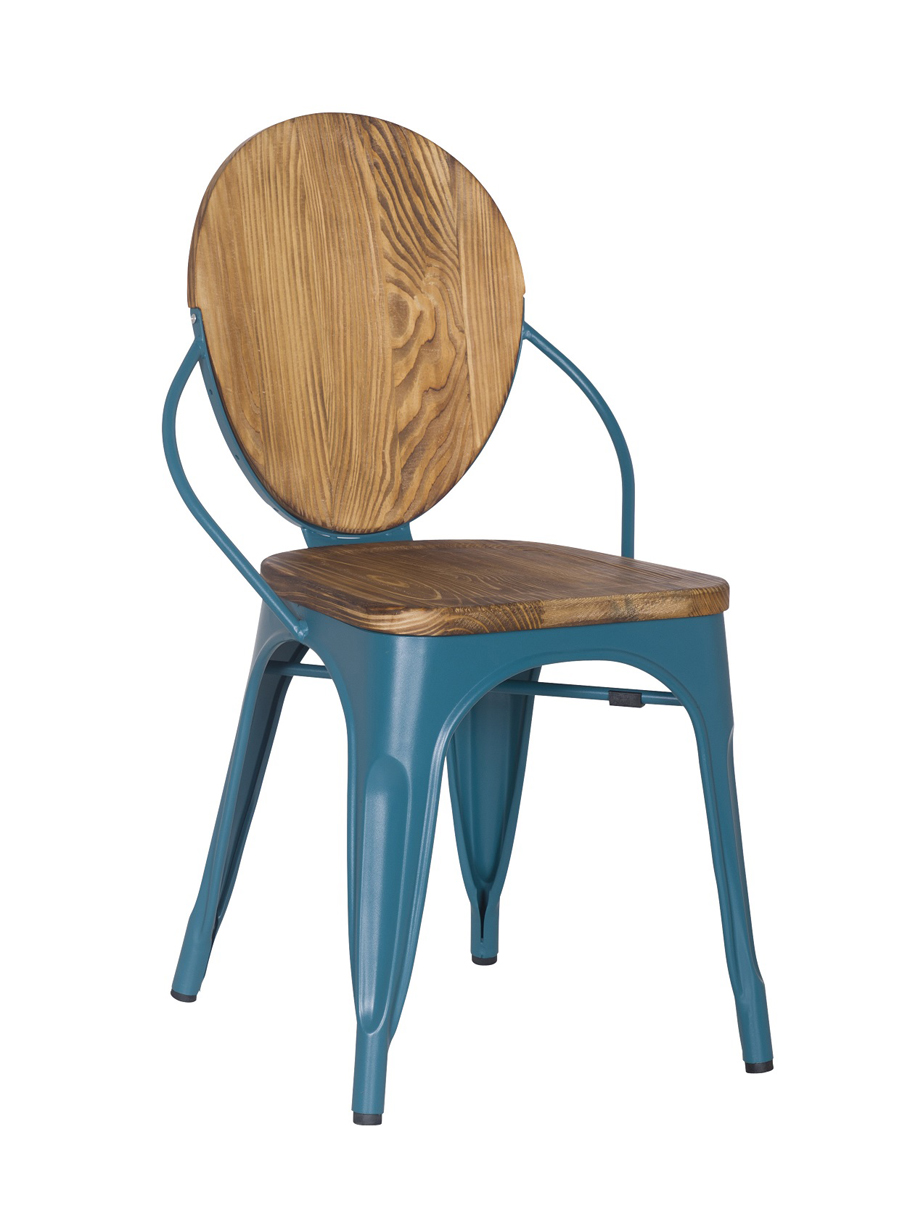 Πολυθρόνα μεταλλική με κάθισμα και πλάτη από ξύλο.