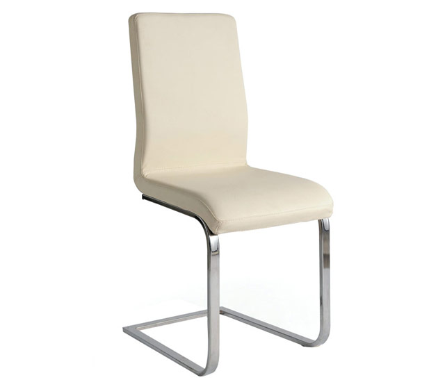 Καρέκλα με σκελετό μεταλλικό χρωμίου και επένδυση από δερματίνη σε μαύρο & λευκό χρώμα στο κάθισμα