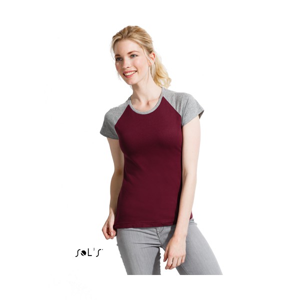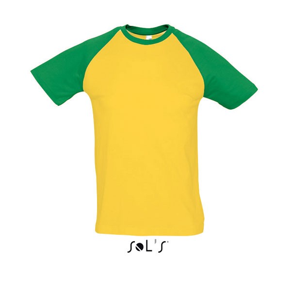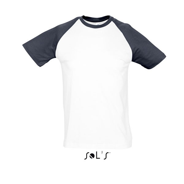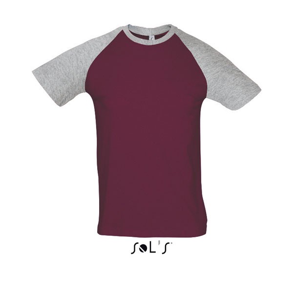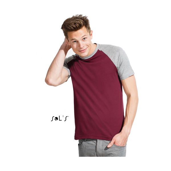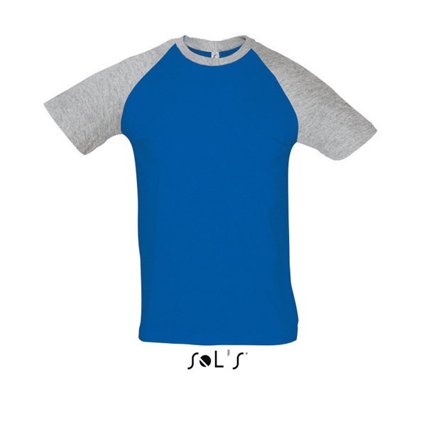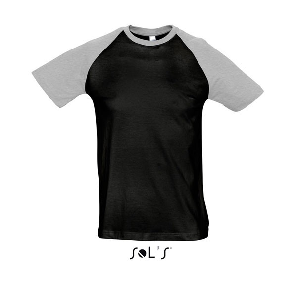 Sol's ανδρικό και γυναικείο δίχρωμο t-shirt με ρεγκλάν μανίκια, κυλινδρικό, με φακαρόλα στο λαιμό και λαιμόκοψη από ελαστικό ριπ.