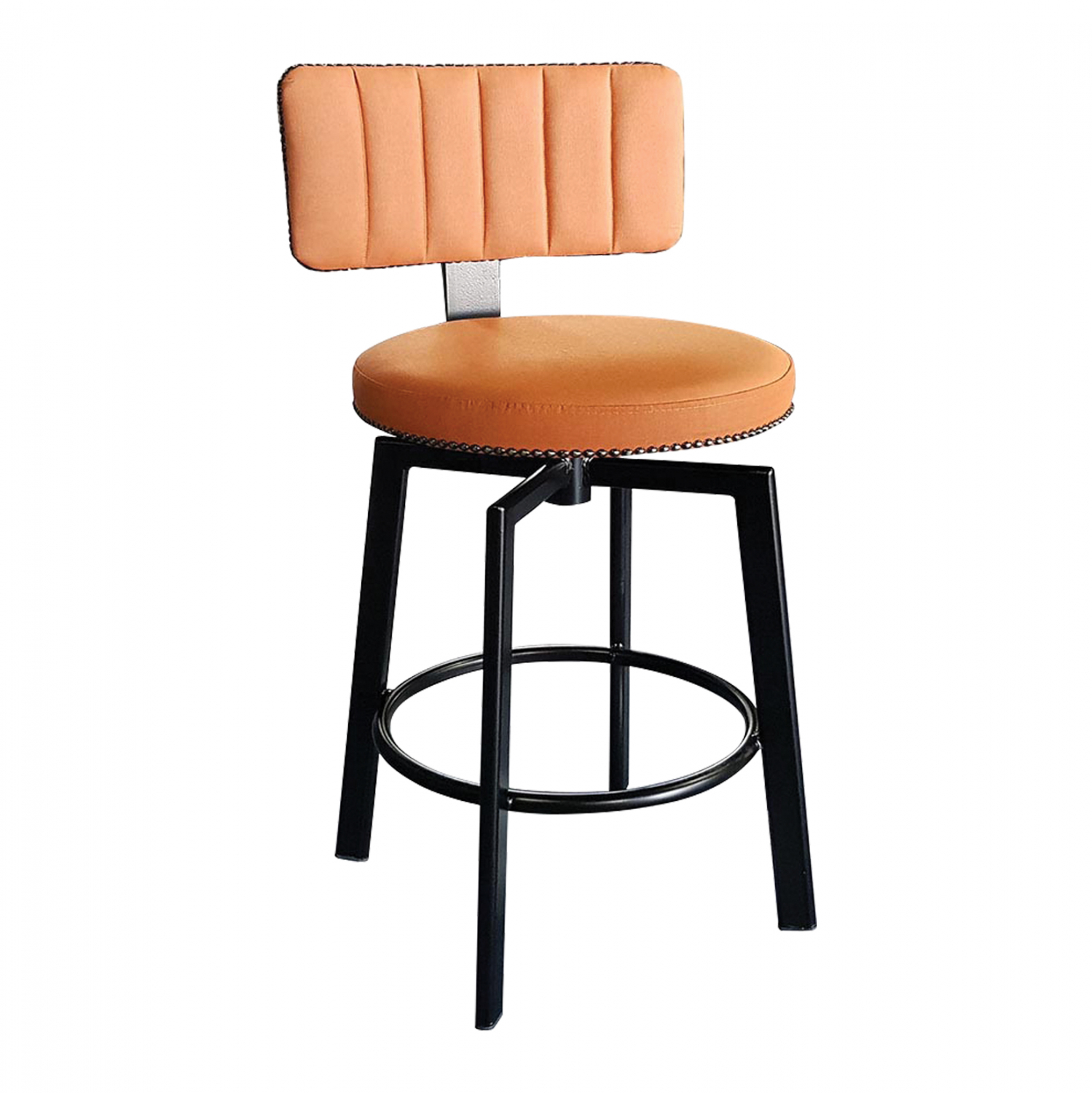 Το σκαμπό αυτό είναι κατασκευασμένο από μεταλλικό σκελετό σε μαύρη απόχρωση και τεχνόδερμα σε πορτοκαλί απόχρωση.