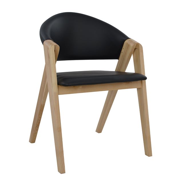 Καρέκλα από ξύλινο σκελετό σε φυσικό χρώμα του ξύλου και κάθισμα και πλάτη από PU σε μαύρη απόχρωση.Μία καρέκλα με καλή συμμετρία άνετο κάθισμα και καλή κατασκευή.