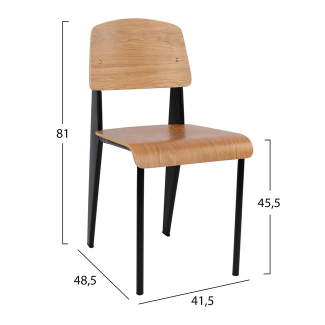 Ο σκελετός της καρέκλας είναι μεταλλικός και το κάθισμα και η πλάτη από ξύλο σε φυσική απόχρωση.