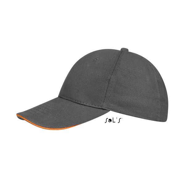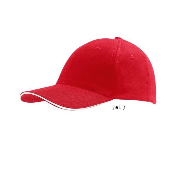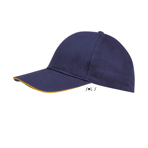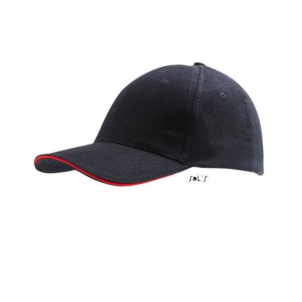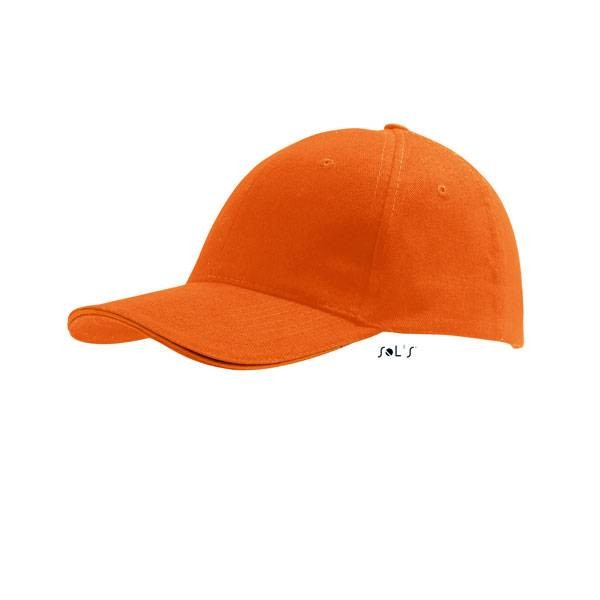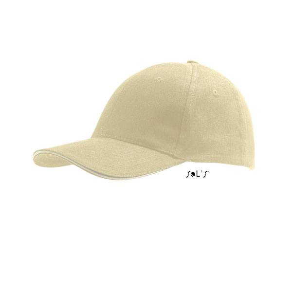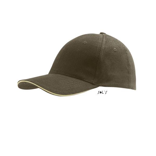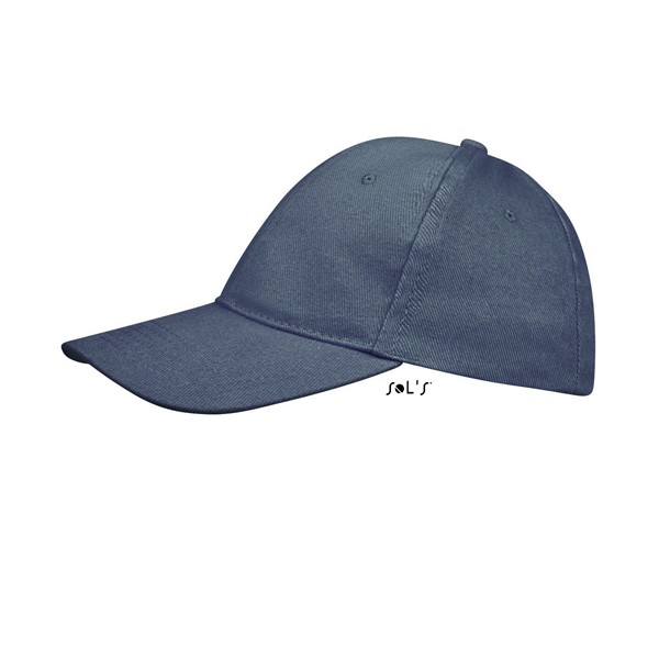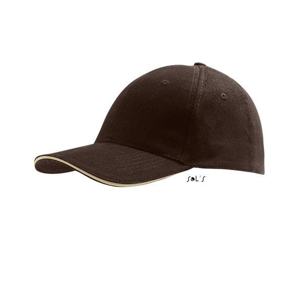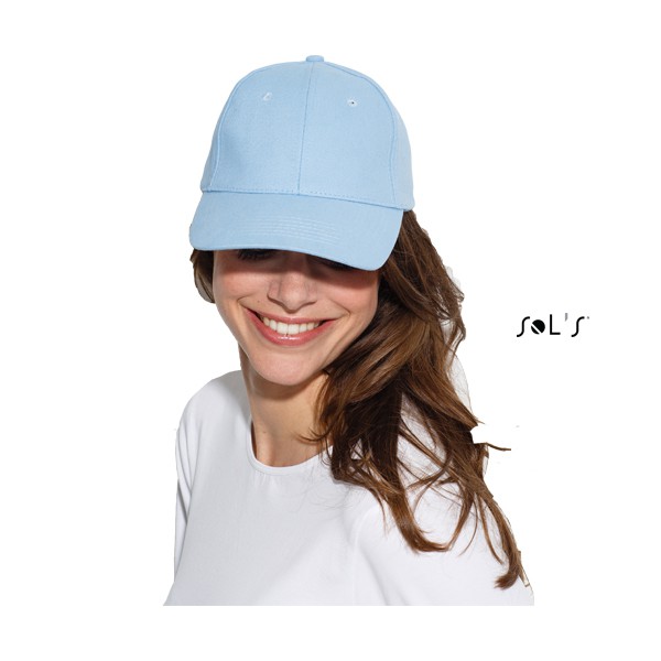 Sol's εξάφυλλο καπέλο τζόκεϊ με προσχηματισμένο γείσο (κυρτό), έξι κεντημένεs οπέs για εξαερισμό και ρυθμιζόμενο πίσω κλείσιμο με μεταλλική αγκράφα.