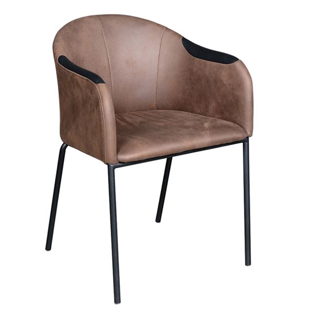 Καρέκλα-πολυθρόνα με σκελετό μεταλλικό βαμμένο σε μαύρο χρώμακαι επένδυση από καφέ & μαύρη δερματίνη .