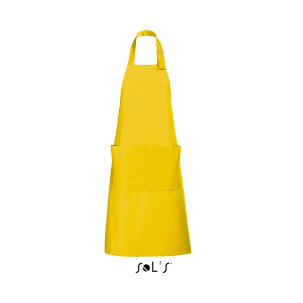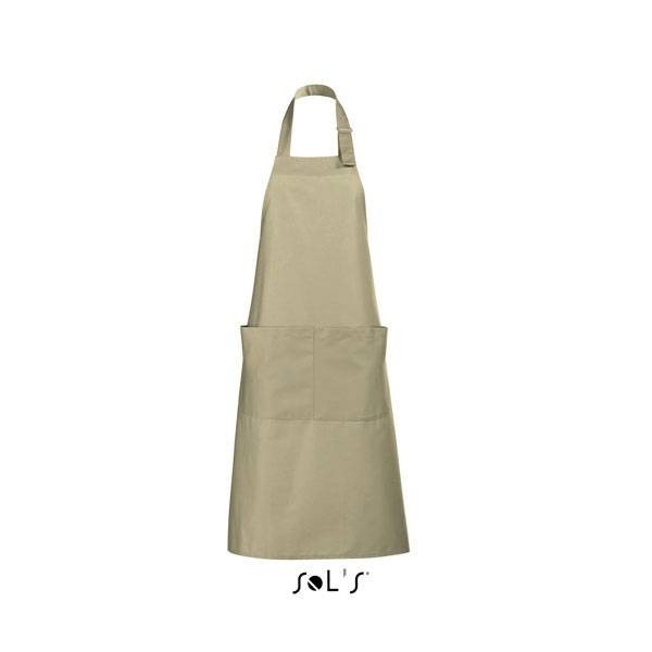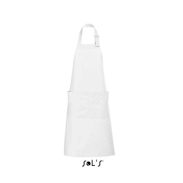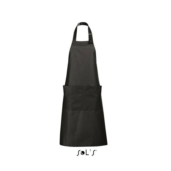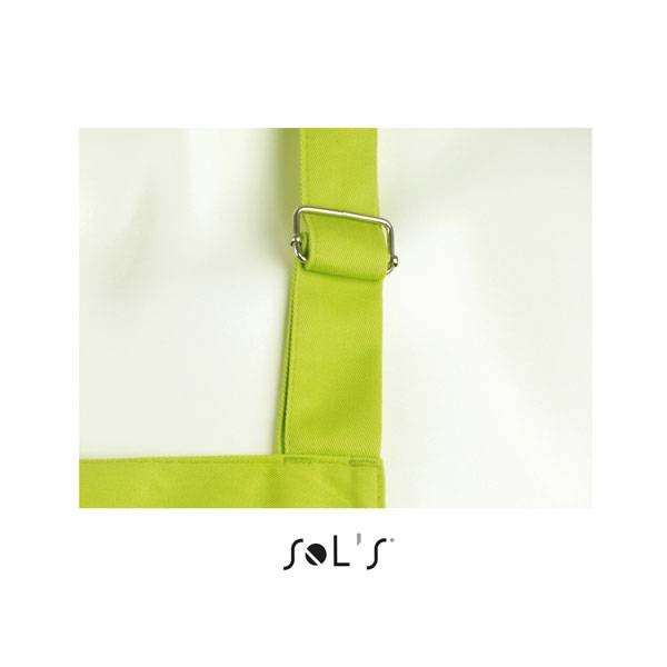 Sol's μακριά ποδιά 90 x 75 εκατοστών, με mεγάλη τσέπη με δύο χωρίσματα, ρυθμιζόμενη στο λαιμό με μεταλλικό κούμπωμα.