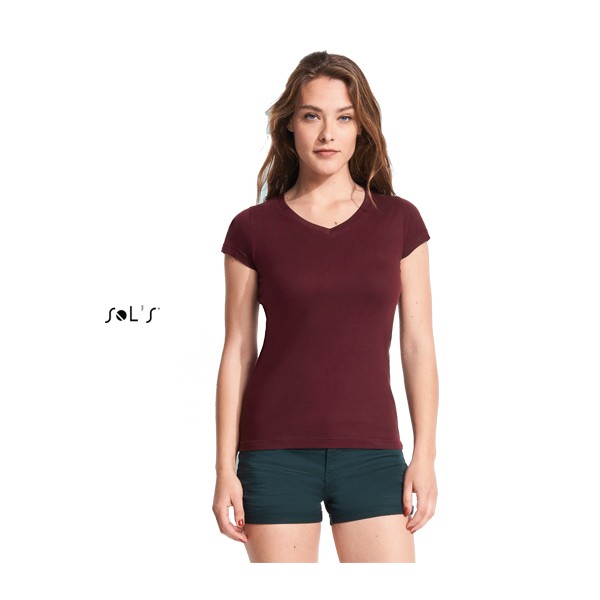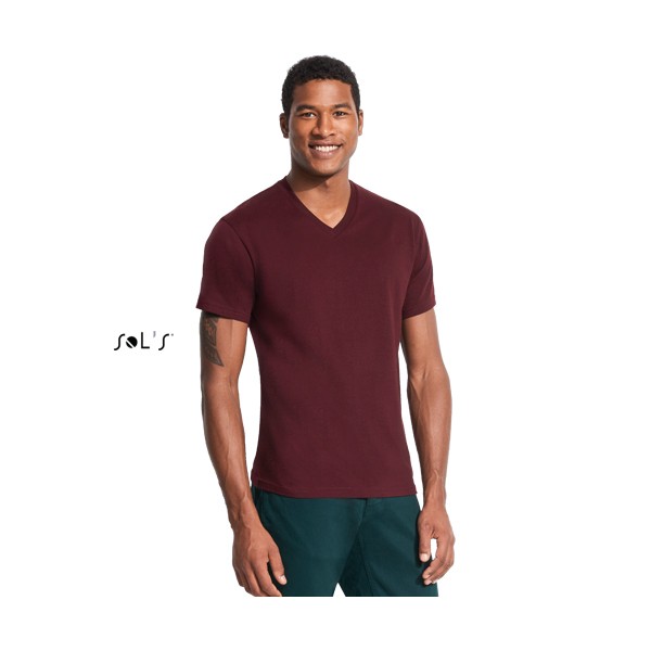 Sol's ανδρικό και γυναικείο t-shirt κυλινδρικό με λαιμόκοψη “V”, κοντά μανίκια , τέσσερα φύλλα στη λαιμόκοψη με φάσα και φακαρόλα στο λαιμό.