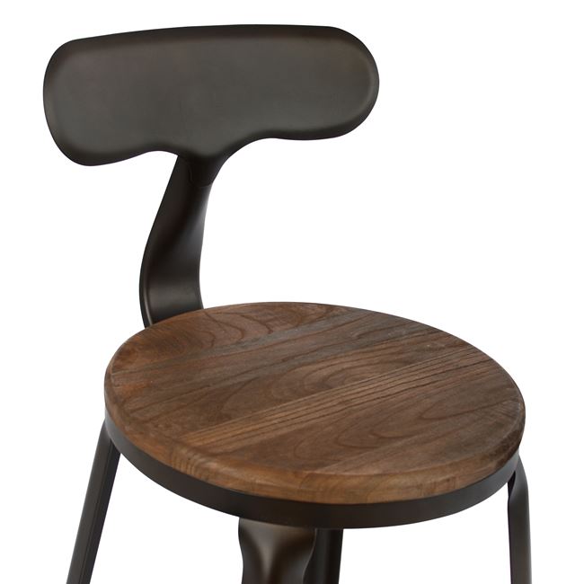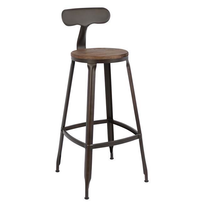 Σκαμπώ Bar μεταλλικό με πλάτη και ξύλινο κάθισμα. Σε μοντέρνο σχεδιασμό INDUSTRIAL. Είναι κατάλληλο και για επαγγελματικό χώρο το στύλ του είναι στην νέα τάση της αγοράς και έχει ιδιαίτερη αντοχή.