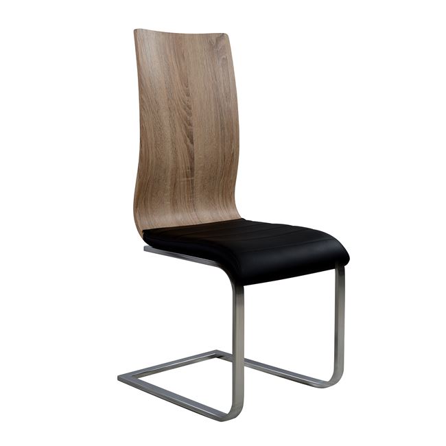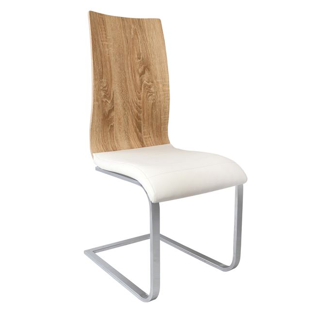 Καρέκλα με σκελετό μεταλλικό χρωμίου και επένδυση από δερματίνη σε μαύρο & λευκό χρώμα στο κάθισμα, η πλάτη είναι ξύλινη από mdf
