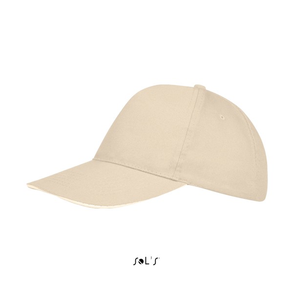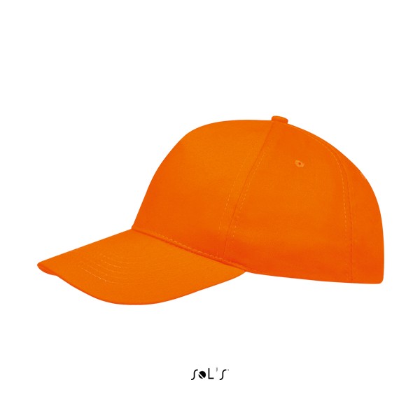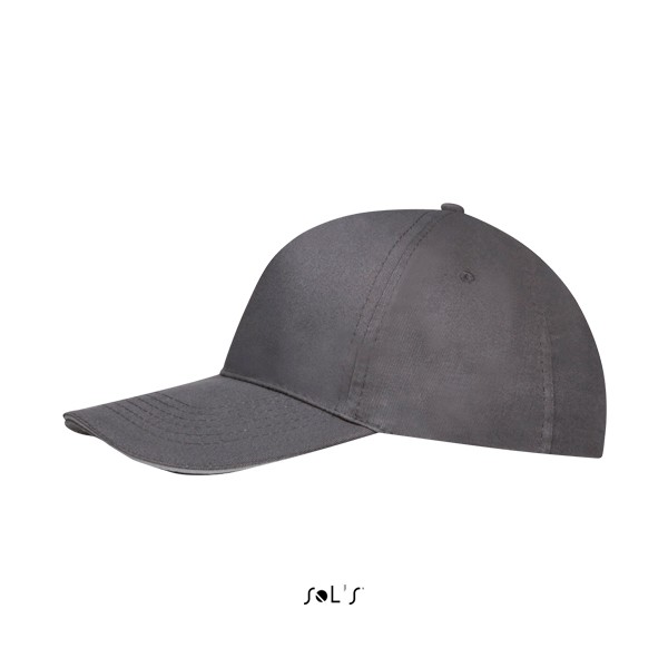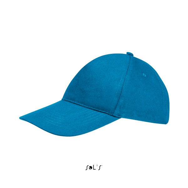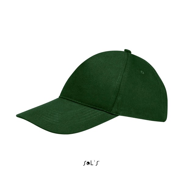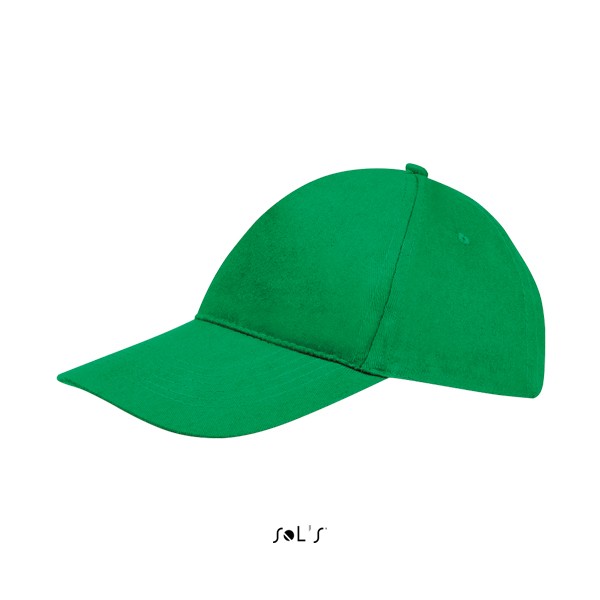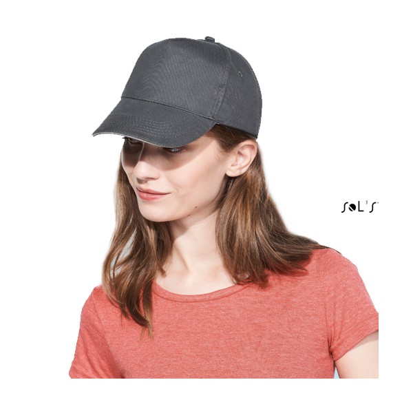 Sol's πεντάφυλλο καπέλο τζόκεϊ με προσχηματισμένο γείσο (κυρτό), τέσσερις ραμμένες οπές για εξαερισμό και ρυθμιζόμενο αυτοκόλλητο πίσω κλείσιμο.